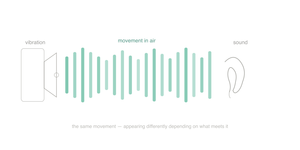 I noticed this at the gym. The workout music playing on the JBL speakers showed up not just as sound, but as vibration under my palms on the chair. Sound is essentially movement. Ears are what make certain movement appear as audio.
